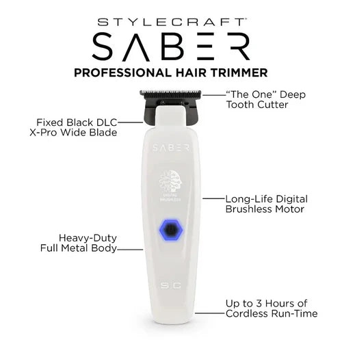 StyleCraft Limited Edition Saber II Cordless Digital Brushless Motor Trimmer - White (SC421W)